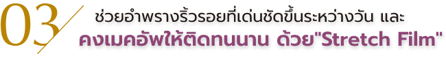 ชั้นฟิล์มที่เคลือบผิวทันทีหลังทา โดยหากทาครีมขณะที่ตรึงริ้วรอยไว้ ชั้นฟิล์มจะสามารถยืดหยุ่นไปตามการเคลื่อนไหวของใบหน้า และจดจำสภาวะผิวที่เรียบตึงนั้นได้ พร้อมทั้งมอบความชุ่มชื้นและช่วยให้ผิวแลดูกระชับขึ้น ทั้งนี้ ยังช่วยให้ริ้วรอยแลดูจางลง พร้อมกับทำหน้าที่เสมือนกาวยึดติดระหว่างเมคอัพกับผิวรอบดวงตา จึงทำให้เมคอัพติดทนและไม่ตกร่องอีกด้วย