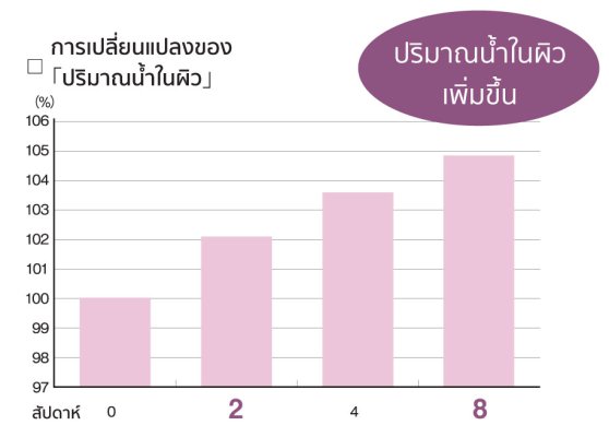 – ผลการทดสอบจากกลุ่มตัวอย่างวัย 30 – 60 ปี จำนวน 42 คน หลังใช้ผลิตภัณฑ์ต่อเนื่อง 3 เดือน โดย DERMAPRO Ltd.ประเทศเกาหลีใต้ ในเดือนกุมภาพันธ์ – พฤษภาคม 2563