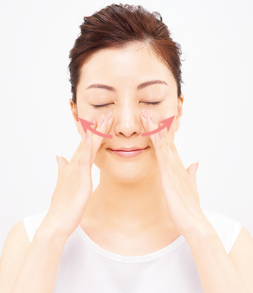 ใช้ปลายฝ่ามือลูบจากร่องแก้ม
